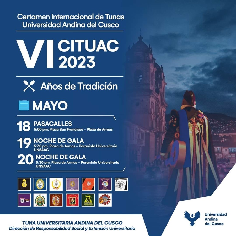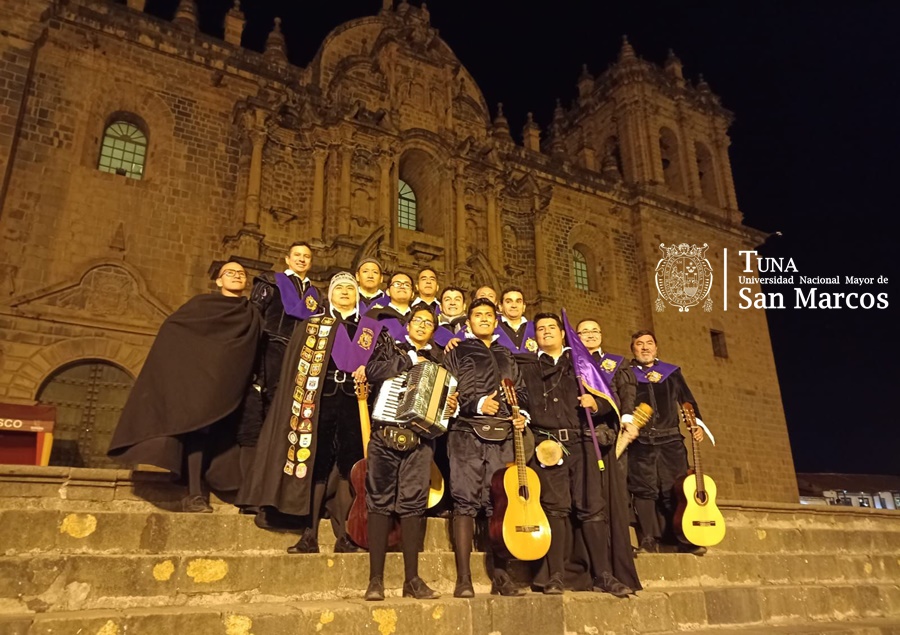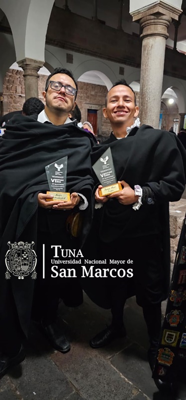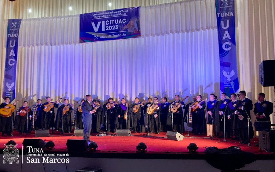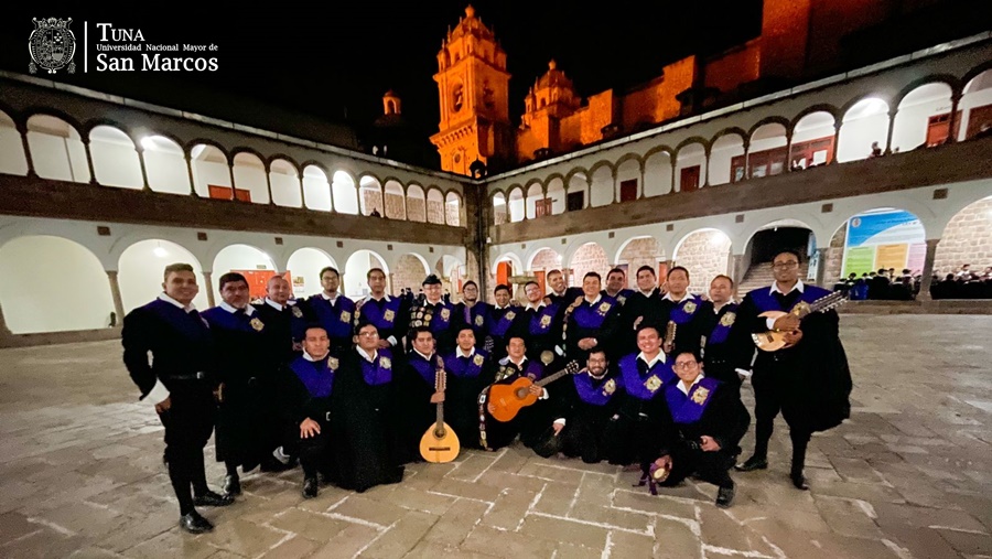 En la noche del sábado 20, la Tuna de San Marcos, con su lema “Academia S. Marci Vrbis Regvum in Perv”, se presentó en el Paraninfo Universitario de la Universidad San Antonio de Abad “Regalis Antonii Magni Cvzqvensis Academia Anno Domini”. Su música resonó en los muros cargados de historia. Fue un momento de orgullo y emoción para los tunos, quienes compartieron su talento con la comunidad universitaria y dejaron una huella imborrable en ese recinto académico. Tocaron, cantaron y así fueron nombrados la “tuna más tuna” de la ciudad imperial, mientras que “Danza del fuego – Benamor” recibió el reconocimiento a la mejor interpretación instrumental de la noche de gala.
