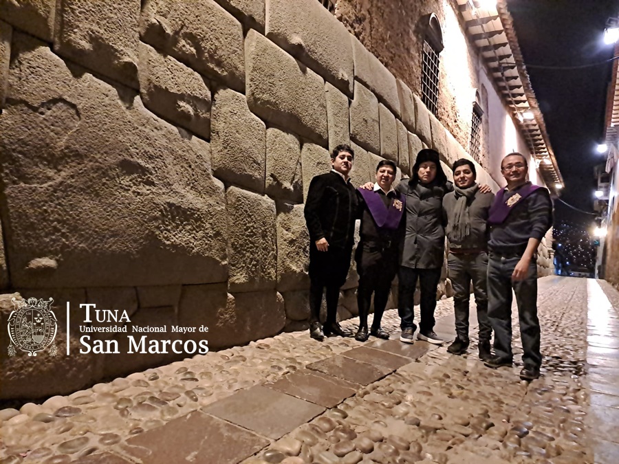 La noche caía sobre la ciudad imperial, y la Tuna de San Marcos se sumergía en la magia del ambiente nocturno. Los faroles iluminaban el camino por calles estrechas pero cargadas de historia, mientras las sombras danzaban al compás de sus melodías. Hicimos una parada en la República del Pisco, donde nos atendieron como a incas, y nuevamente la Plaza de Armas se convirtió en nuestro escenario principal, donde nuestra música envolvía la majestuosidad de la arquitectura colonial y los vestigios de la civilización incaica.